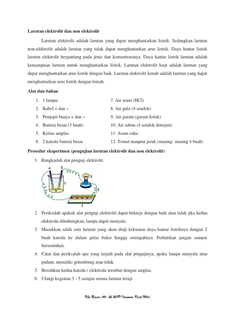Actividad De Lkpd Larutan Elektrolit Non Elektrolit